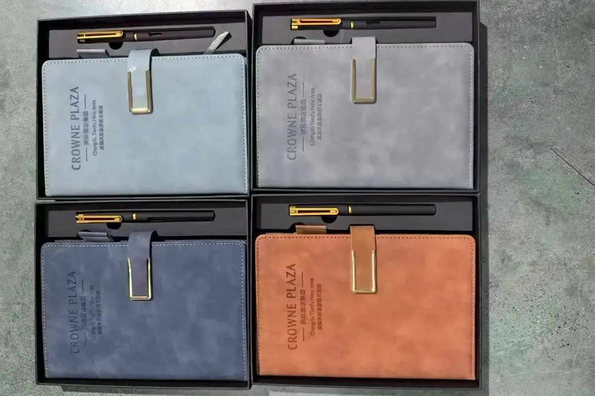 - PU皮/变色革: 商务笔记本定做的主流首选。触感细腻,热压后Logo处颜色自然加深,呈现出极具高级感的凹凸纹理,沉稳且专业。